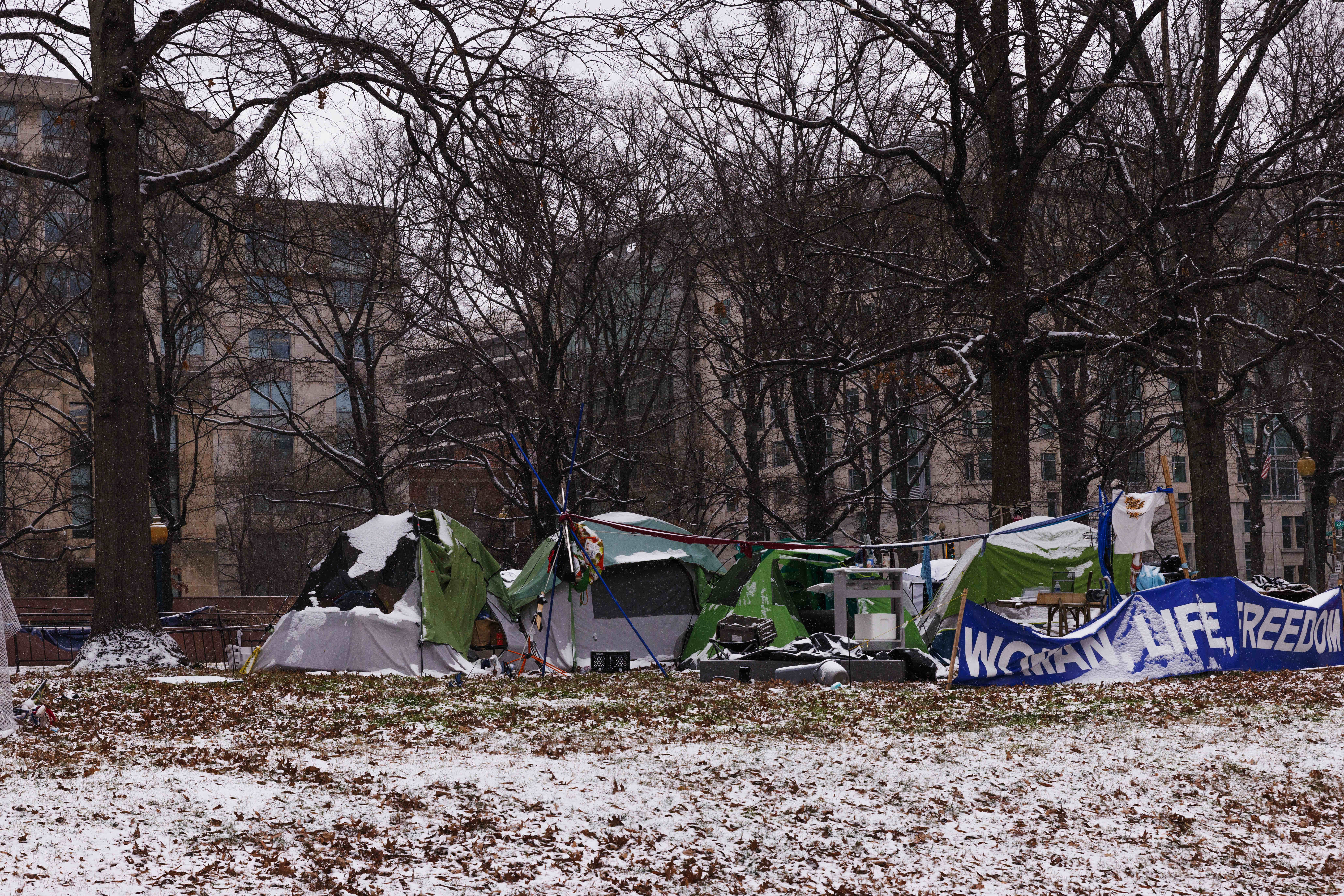 2024年1月15日,在美国首都华盛顿,无家可归者的帐篷被积雪覆盖。新华社发(阿伦摄)