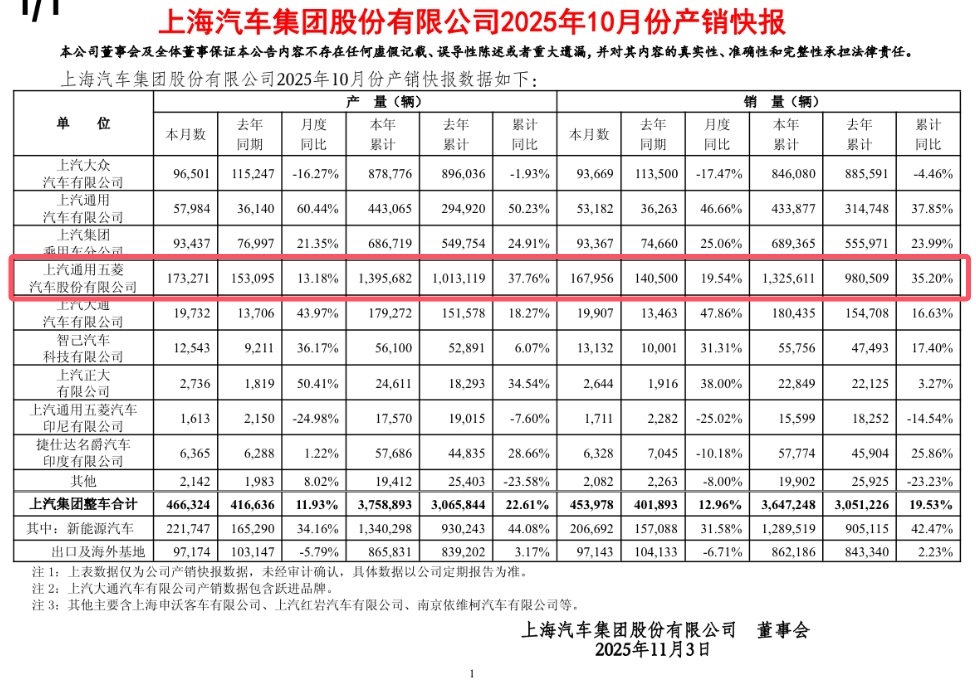 根据上汽集团官方发布的11月产销快报,上汽通用五菱当月销量为166,083辆,尽管这一数字使其稳居集团内部单一企业销量榜首,但同比下滑7.73%的现实,无法被忽视。