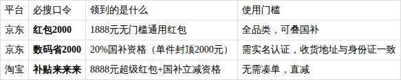 二、国补+红包“叠buff”正确姿势(按顺序操作,少一步亏500)锁资格:先搜【数码省2000】完成实名认证,出现“国补已激活”绿标才算成功。加购:把心仪商品加进购物车,京东自营优先,支持30天价保,买贵退差。凑满减:京东每满200-30可无限叠加,淘宝官方立减12%无需凑单。掐点付款:今天20:00、22:00是最后两轮“补额度”高峰,系统会二次放仓,断货款大概率刷回现货。截图留证:下单后立刻截图订单详情,30天内若降价,京东“价格保护”一键退差,秒到账。淘宝国补的正确领取方法是在淘宝APP搜索「补贴来来来」,进入国家补贴专区领取资格,单件商品最高可立减2000元。